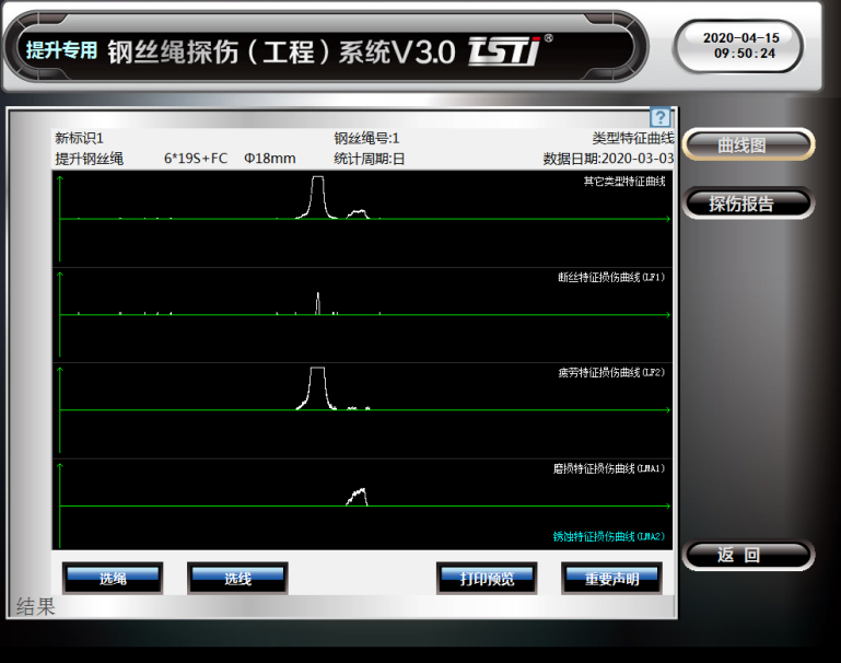 TST猫咪网站在线成人免费看探伤(工程)系统是一种针对各种工况提升猫咪网站在线成人免费看的损伤现象实时在线无损探伤的工程设备系统。该系统以“KJ578煤矿用猫咪网站在线成人免费看探伤系统”为硬件平台,搭载“TST猫咪网站在线成人免费看探伤(工程)系统V4.0”专业分析软件,采用“变量补偿传感器”、“三维磁感应桥”和“自平衡同步励磁”等无损探伤专利技术综合集成可全天候无人值守在线实时探测猫咪网站在线成人免费看内外部断丝、锈蚀、疲劳、磨损及变形等各种损伤隐患,通过LMA曲线分析,评估猫咪网站在线成人免费看的使用寿命。